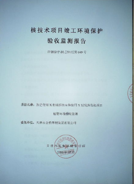 核技術項目竣工環(huán)境保護驗收監(jiān)測報告