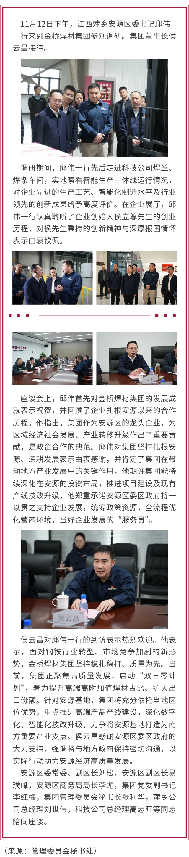 江西萍鄉(xiāng)安源區(qū)委書記邱偉 赴金橋焊材集團(tuán)參觀調(diào)研并深化項目合作